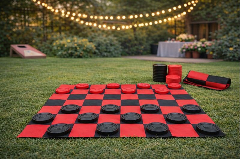 Add an oversized twist to a classic game with the Jumbo Checkers Set, available for rent from Tubular Inflatables. This engaging game features a durable 58-inch checkerboard mat and 7-inch coins, delivering interactive fun for guests of all ages. Perfect for indoor and outdoor events, this set is a showstopper that will entertain everyone!
