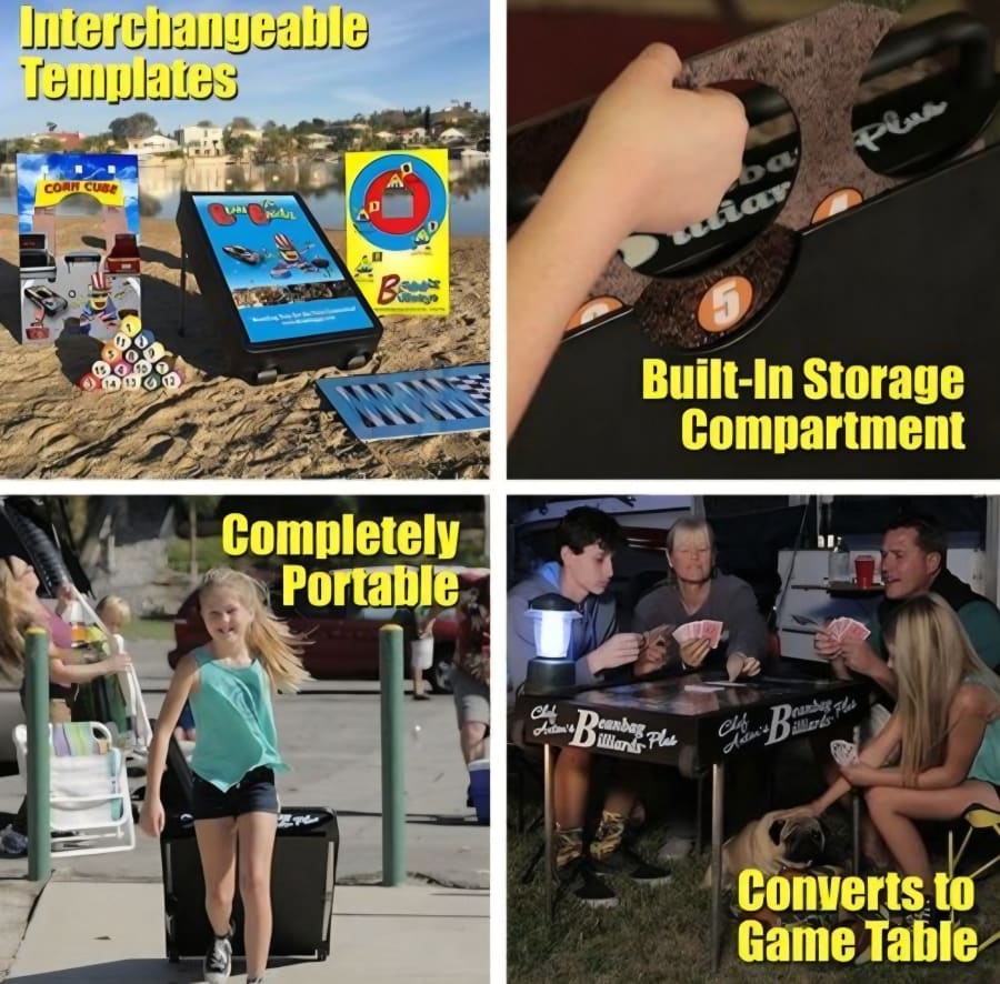 This unit includes multiple interchangeable game boards with dozens of game variations, including sports-themed tossing games, strategy games, and skill-based challenges.