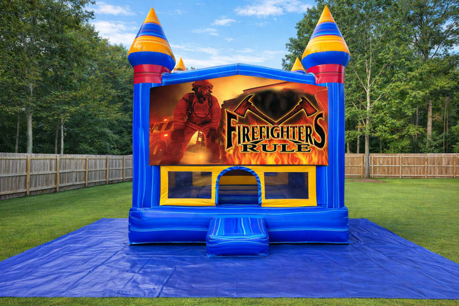 Whether you're hosting an event in Hubert, Jacksonville, Swansboro, Cape Carteret, or nearby coastal communities, this firefighter bounce house banner adds heroic excitement to your inflatable.