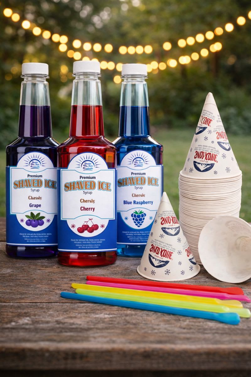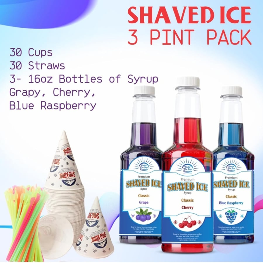 • 3 Flavors of Snow Cone Syrup (16oz each):