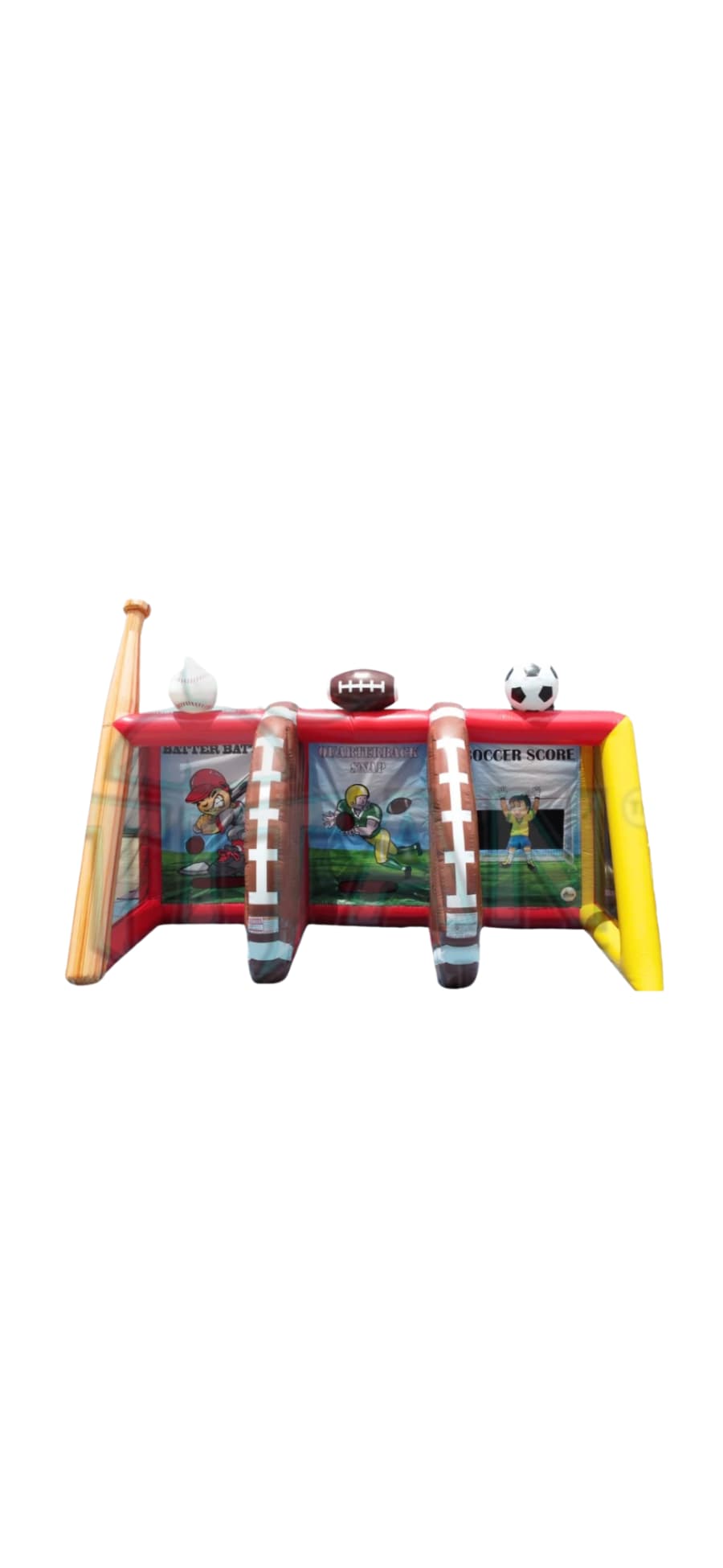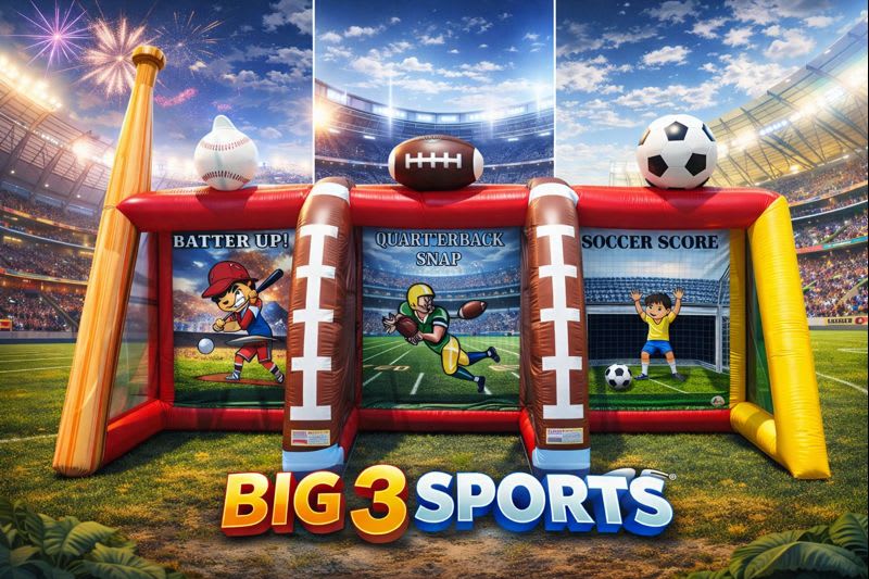 Bring the competition to your next event with our BIG 3 Sports Game from Tubular Inflatables! This interactive inflatable lets you play baseball, football, and soccer all at the same time — perfect for parties, school events, festivals, and team-building activities. The BIG 3 Sports Game offers non-stop action and excitement for guests of all ages.