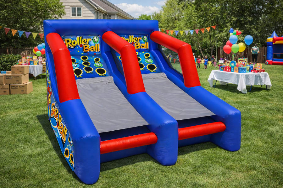 Bring the excitement of the arcade to your next event with the Dual Lane Roller Ball Inflatable Game from Tubular Inflatables! This interactive game is a larger-than-life version of the classic roller ball arcade favorite, where players race to roll balls up the lane and land them in high-scoring targets.