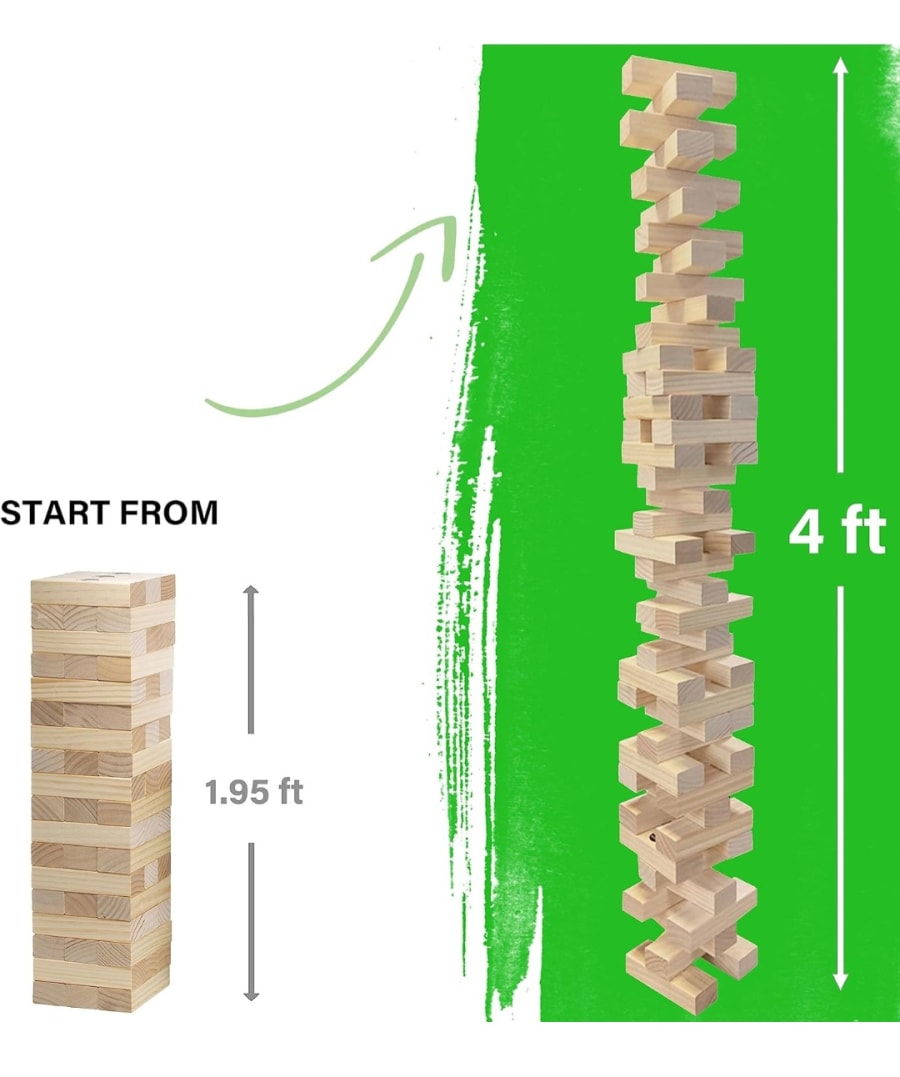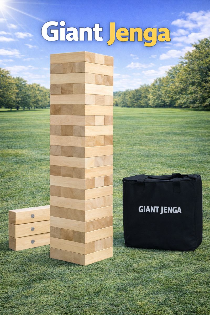 Take your event to new heights with Giant Jenga, available for rent from Tubular Inflatables. This oversized version of the classic block-stacking game delivers hours of fun and excitement, making it a perfect addition to backyard parties, corporate events, family gatherings, and more!
