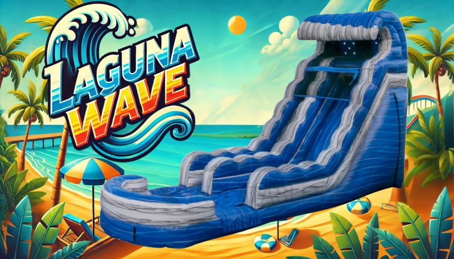 Make a splash at your next event with the 18ft Laguna Wave Water Slide (wet only slide), available for rent from Tubular Inflatables! This towering inflatable slide features a bold tropical design and a thrilling ride that’s perfect for kids, teens, and adults. Whether you're hosting a birthday party, corporate event, school function, or summer celebration, this water slide will keep everyone entertained and cool.