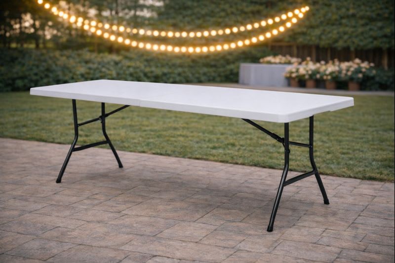 • 8-Foot Rectangular Tables – Seats 8-10 guests, ideal for buffets, meetings, and banquet-style seating.