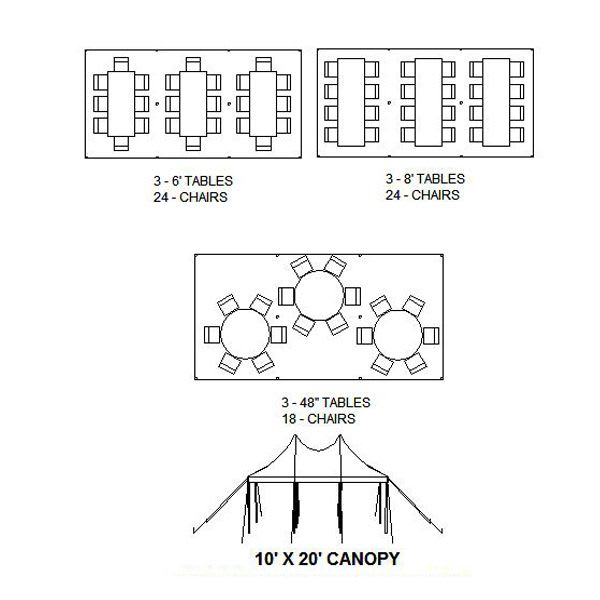 • 10x20 Canopy Tent: A spacious and weather-resistant structure ideal for outdoor events.