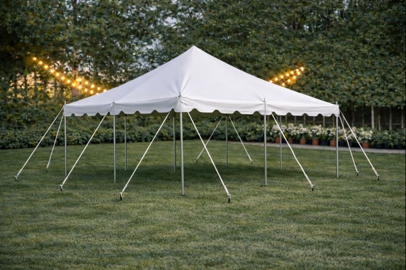 - 20x30 Pole Tent – Ideal for medium to large events; can accommodate 80-100 guests.