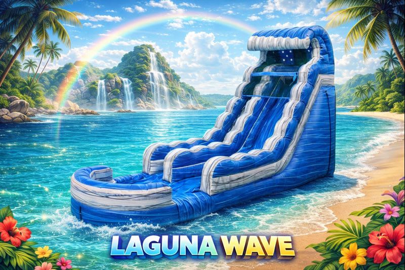 Make a splash at your next event with the 18ft Laguna Wave Water Slide (wet only slide), available for rent from Tubular Inflatables! This towering inflatable slide features a bold tropical design and a thrilling ride that’s perfect for kids, teens, and adults. Whether you're hosting a birthday party, corporate event, school function, or summer celebration, this water slide will keep everyone entertained and cool.