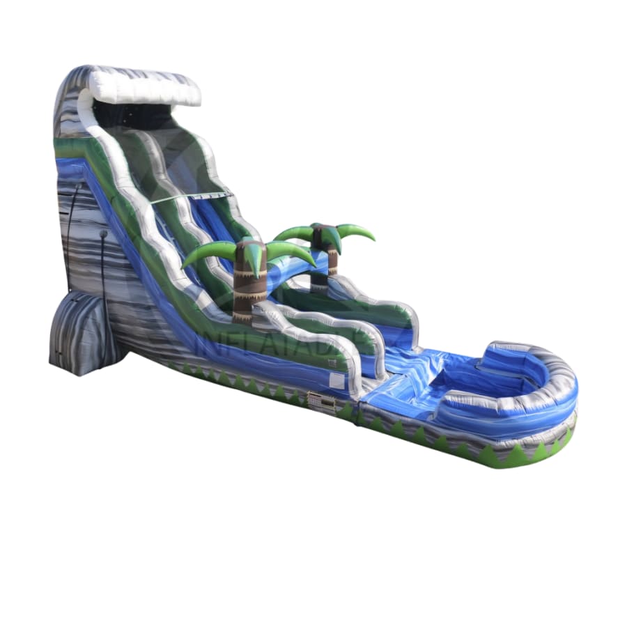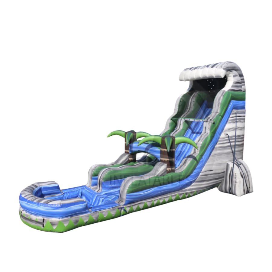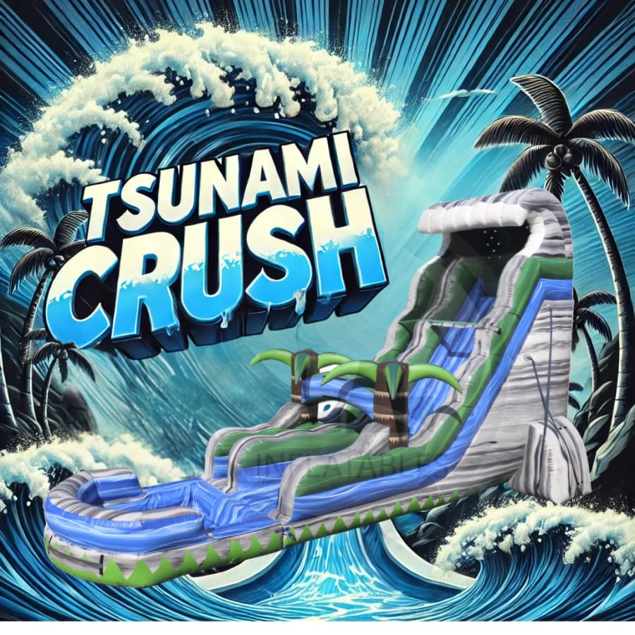 Get ready for an unforgettable ride with the Tsunami Crush 22ft Water Slide (wet only), a towering inflatable that brings the thrill of ocean waves to your backyard or event! This massive water slide features a steep, adrenaline-pumping drop, vibrant tropical colors, and a refreshing splash pool at the bottom—perfect for keeping guests cool and entertained on hot days. Whether you're hosting a birthday party, corporate event, or summer celebration, the Tsunami Crush guarantees endless fun for all ages!