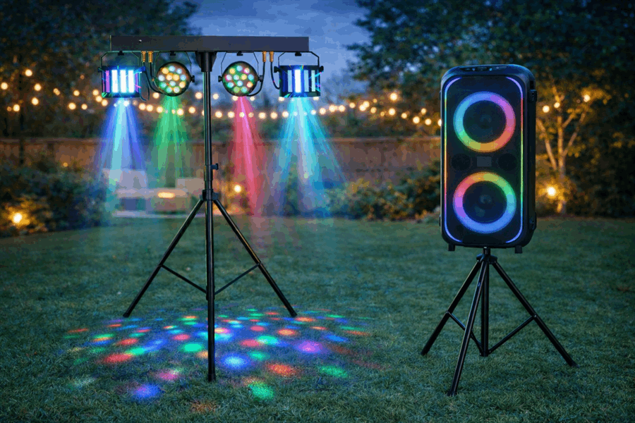 Whether you're hosting a small get-together or a larger celebration, this party speaker and lighting package provides the sound and visual effects needed to keep guests entertained.